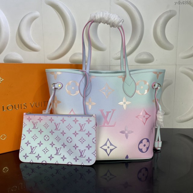 lv路易威登專櫃2022春款Neverfull中號手袋 lv頂級原單漸變虹彩色購物袋媽咪包 M46077 20511漸變 ydh4855