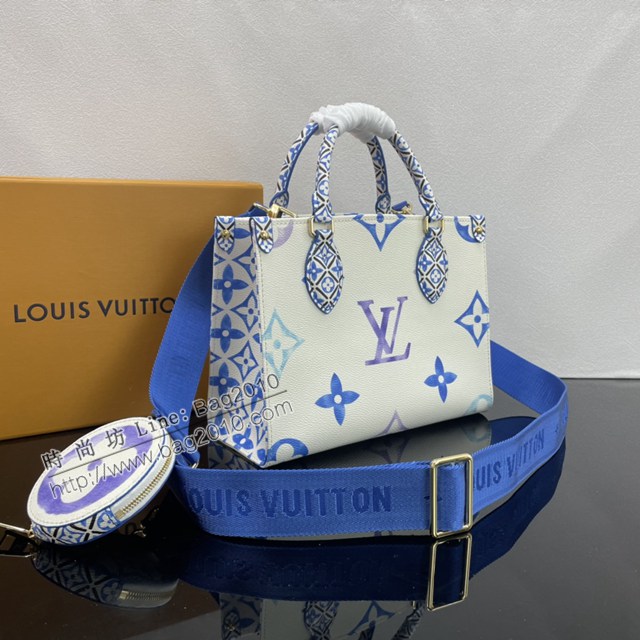 Lv路易威登2023專櫃新款OnTheGo小號手袋 LV帆布鋪陳淡雅手提肩背購物袋 M22976 ydh5098