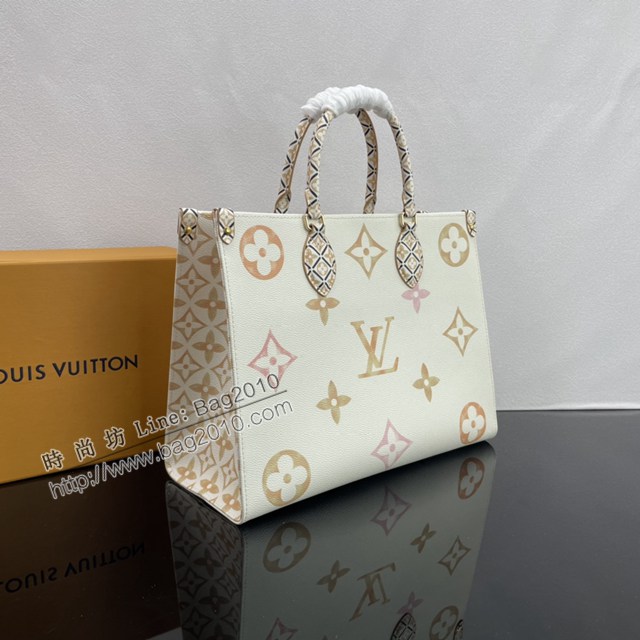 Lv路易威登2023專櫃新款OnTheGo中號手袋 LV帆布鋪陳淡雅手提肩背購物袋 M22976 ydh5100