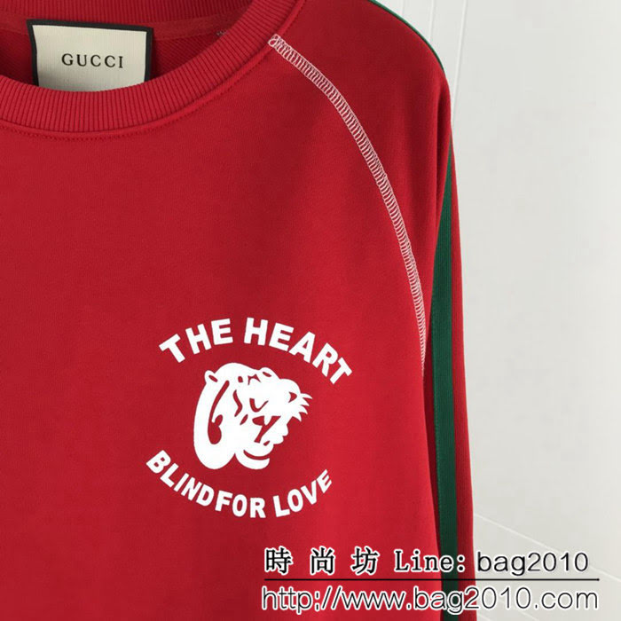GUCCI古馳 18ss秋冬新款 虎頭印花 紅色衛衣 情侶款 ydi1137