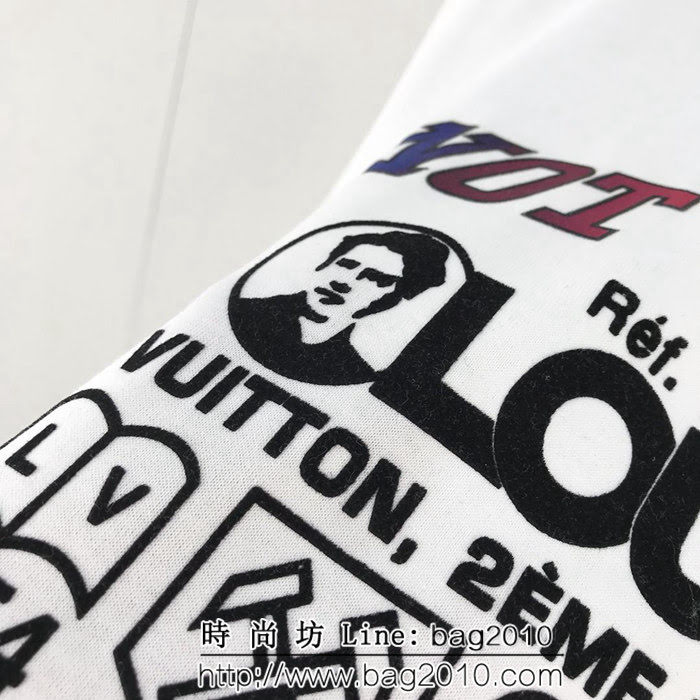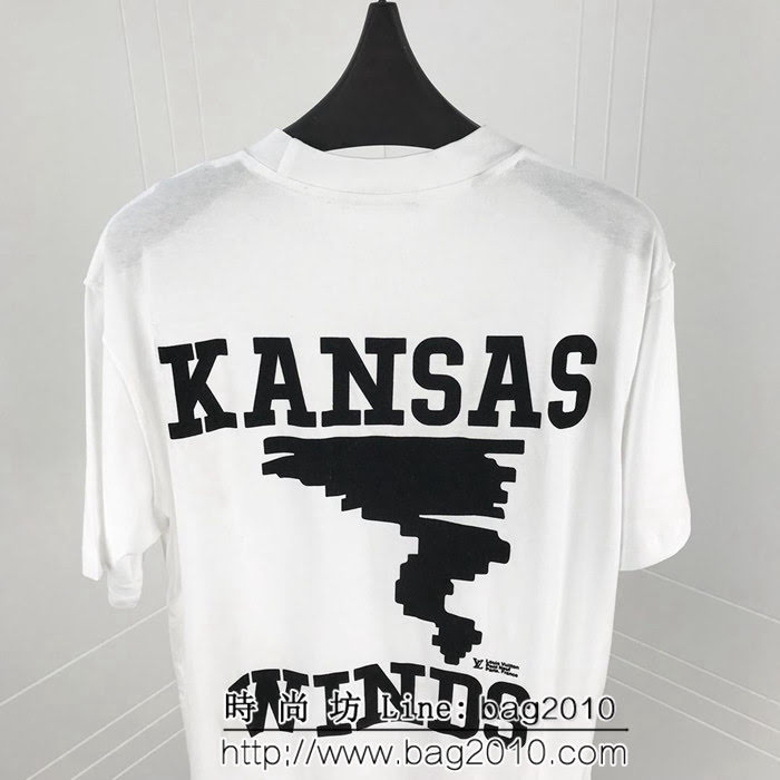 Lv路易威登 19早春新款 植絨印花短袖 雙股絲光棉面料 原版面料 肩膀反向走線細節處理 超高工藝還原原版植絨印花區別市場看圖做貨 高價購入原版定制 高版本情侶款尺碼:S-XXL