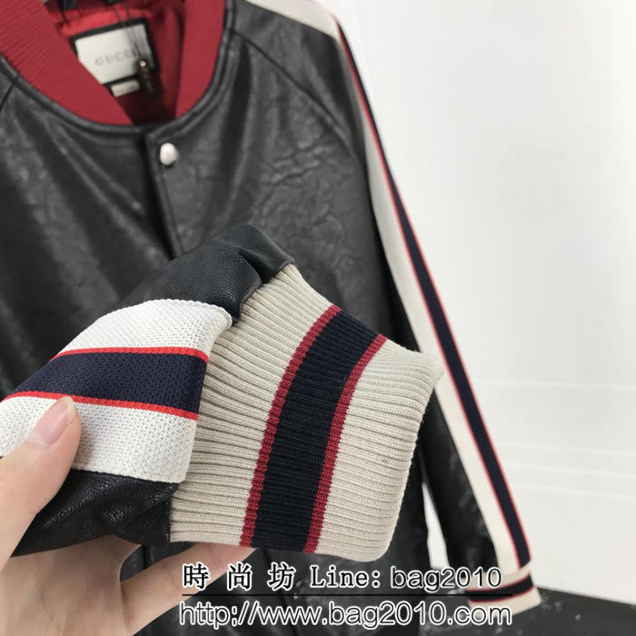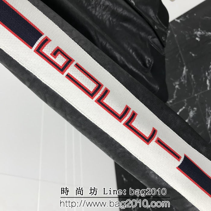 Gucci古奇 18ss秋冬新款鏤空設計Pu皮衣 背後G家經典方塊logo 袖子定制織帶 三標齊 高版本男女同款尺碼:L-3XL