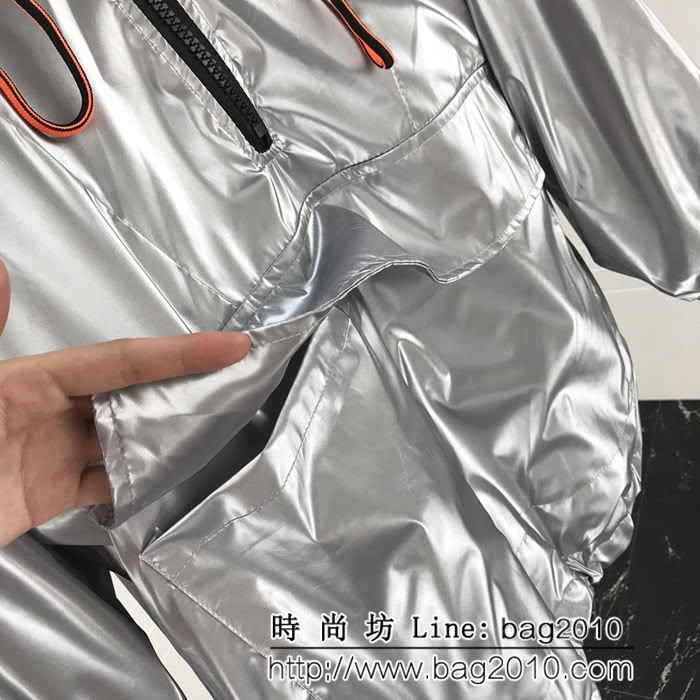 Burberry巴寶莉 18ss秋冬新款 銀色騎士衝鋒衣 OS版型 內裏夾薄棉 背後騎士刺繡圖案 高版本男女同款尺碼:M L