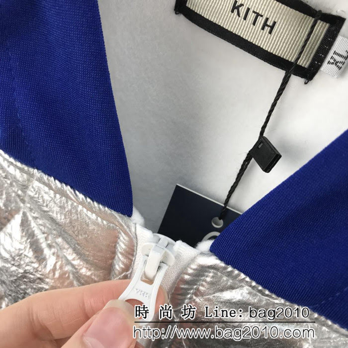 ChamPion X KITH最新聯名款 銀色菱形格紋棉服外套 中長款 OS寬鬆版型 男女同款尺碼:Sml