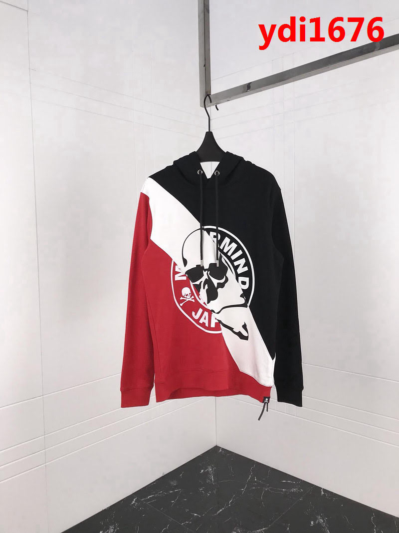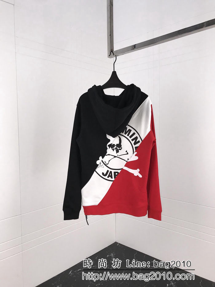 MMJ 18FW最新款 拼接撞色 黑白拼接骷髏頭錯位印花 純棉絨連帽衛衣 ydi1676