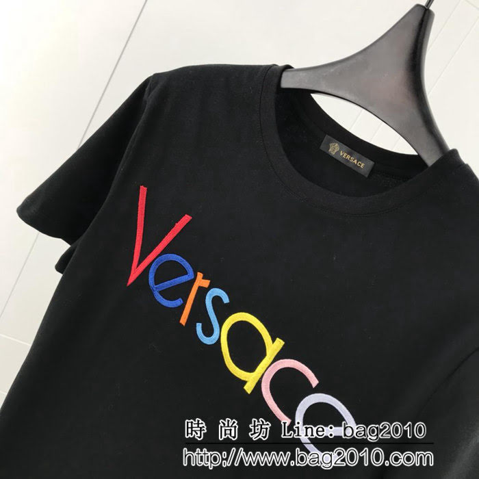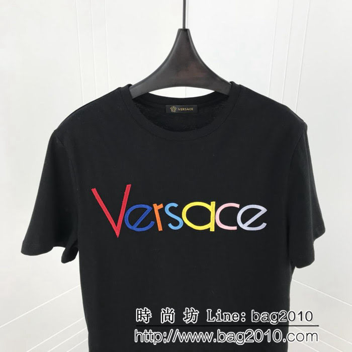 Versace範思哲 19ss早春新款短袖 彩色Versace字母刺繡logo 定制精梳棉面料 男女同款尺碼:S-XXL