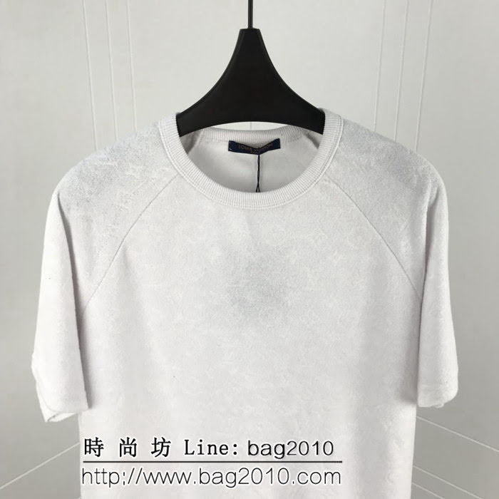 LV路易威登 19ss春夏新款 經典老花logo 暗紋壓花 白色純棉短袖 男女同款 ydi1810