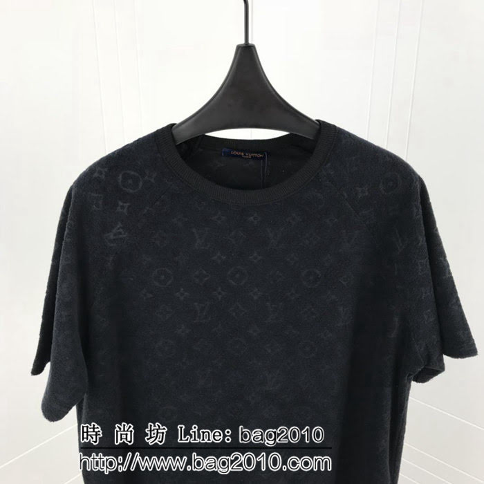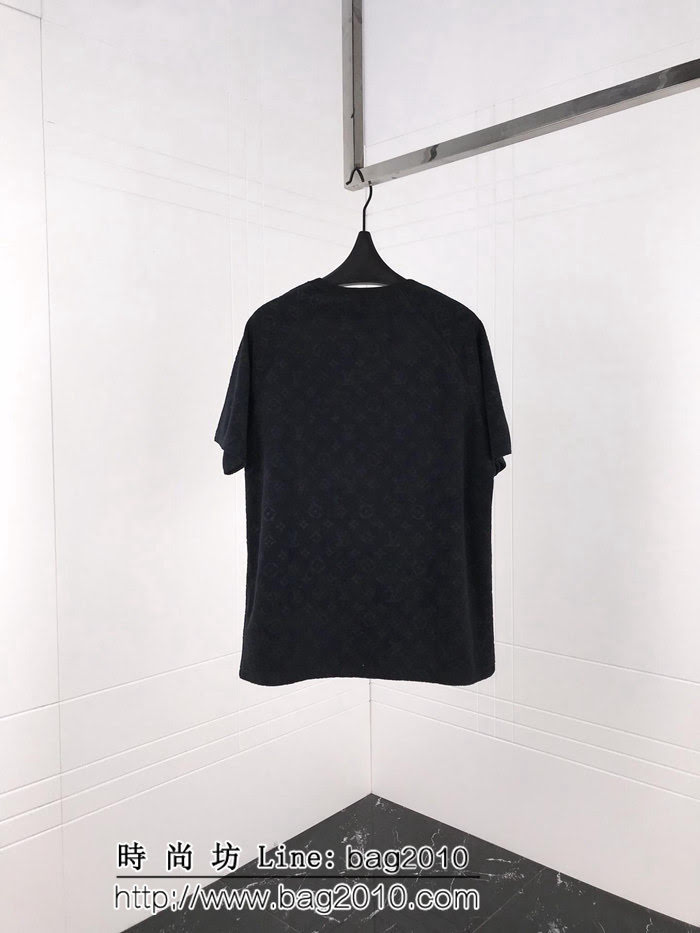 LV路易威登 19ss春夏新款 經典老花logo 暗紋壓花 黑色純棉短袖 男女同款 ydi1811