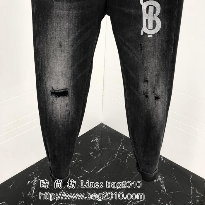 BURBERRY巴寶莉 18ss秋冬新款牛仔褲 黑灰色 洗水做舊磨破 ydi1998