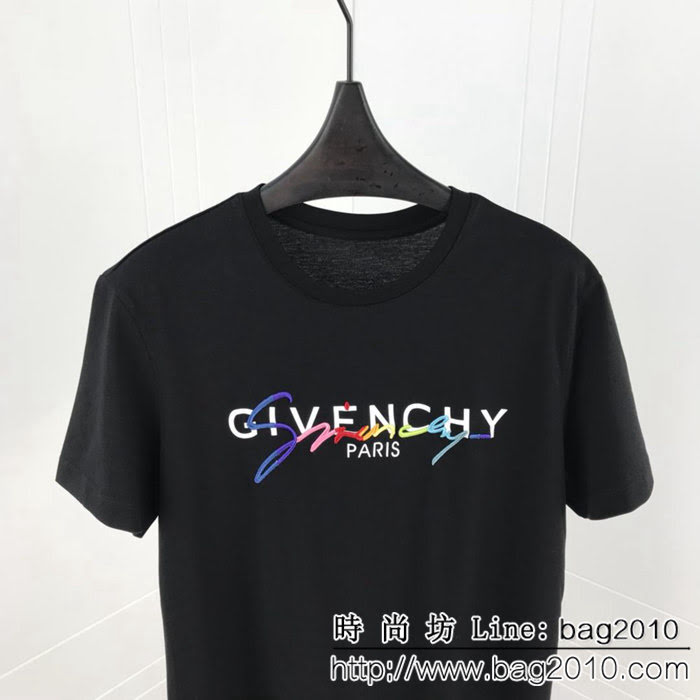 Gvc紀梵希 19ss早春新款 彩色字母刺繡短袖 精密刺繡工藝 定制面料 黑白雙色 男女同款 ydi2274