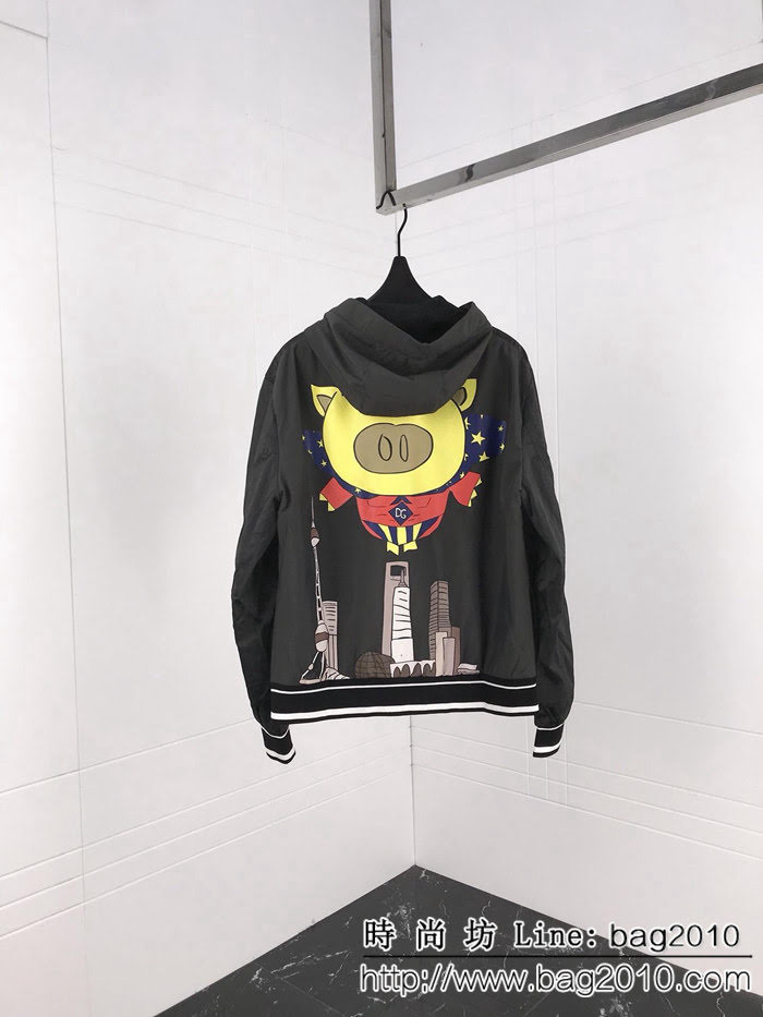 DG杜嘉班納 19ss春季新款 豬年趣味小豬印花圖案 原單管道貨 男款風衣外套 ydi2295
