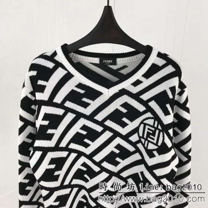 FENDI芬迪 18ss秋冬新款FF系列 菱形格子V領針織毛衣 黑白字母設計 柔軟細膩羊毛面料 高版本男女同款size:M-3XL