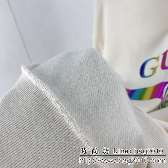 Gucci古奇 19早春新款衛衣 設計logo 漸變彩色系列 純棉絨面料 米色黑色兩色 高版本情侶款 ydi2356