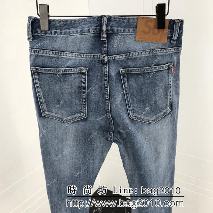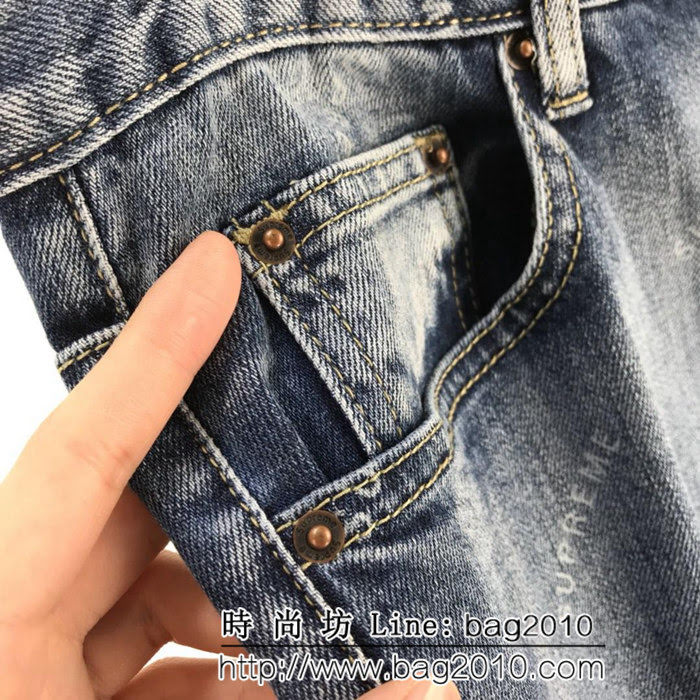 SUPREME 18ss專櫃新款 全身suPreme印花 淺藍色 男款牛仔褲 ydi2406
