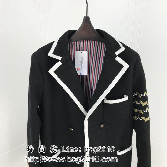 THOM BROWNE湯姆布朗 走秀款 TB臘腸狗狗刺繡 毛呢大衣 定制原版金色紐扣 高版本男女同款 ydi2565