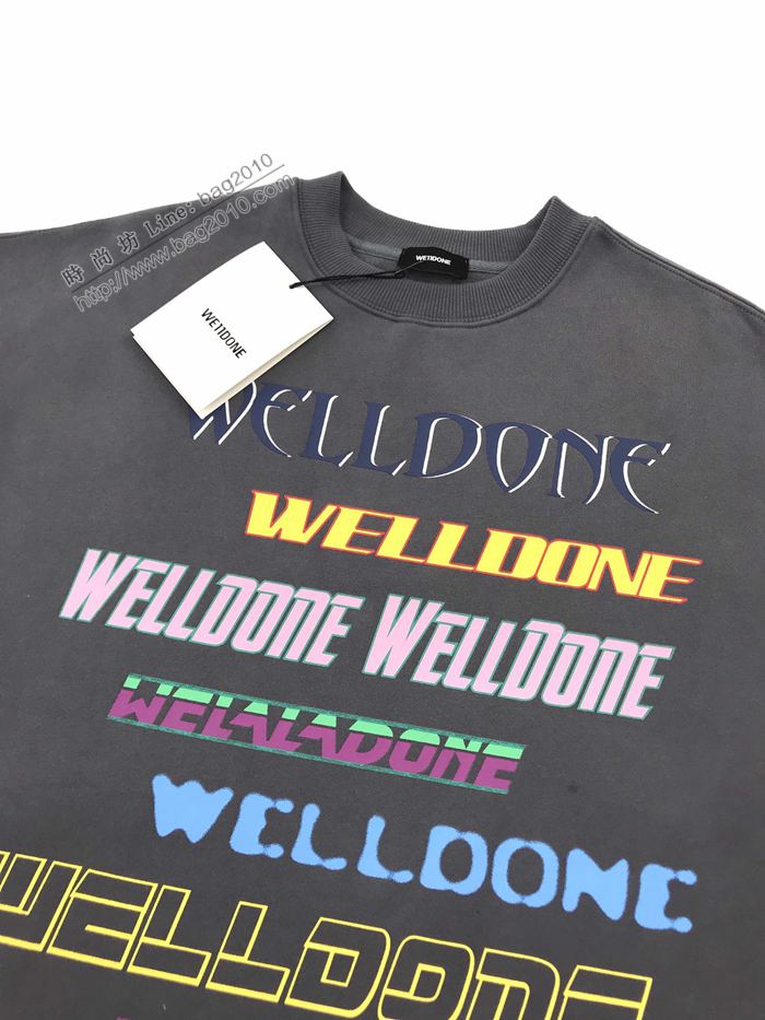 welldone男裝 多彩字母塗鴉logo印花 welldone石灰色圓領衛衣  ydi3088