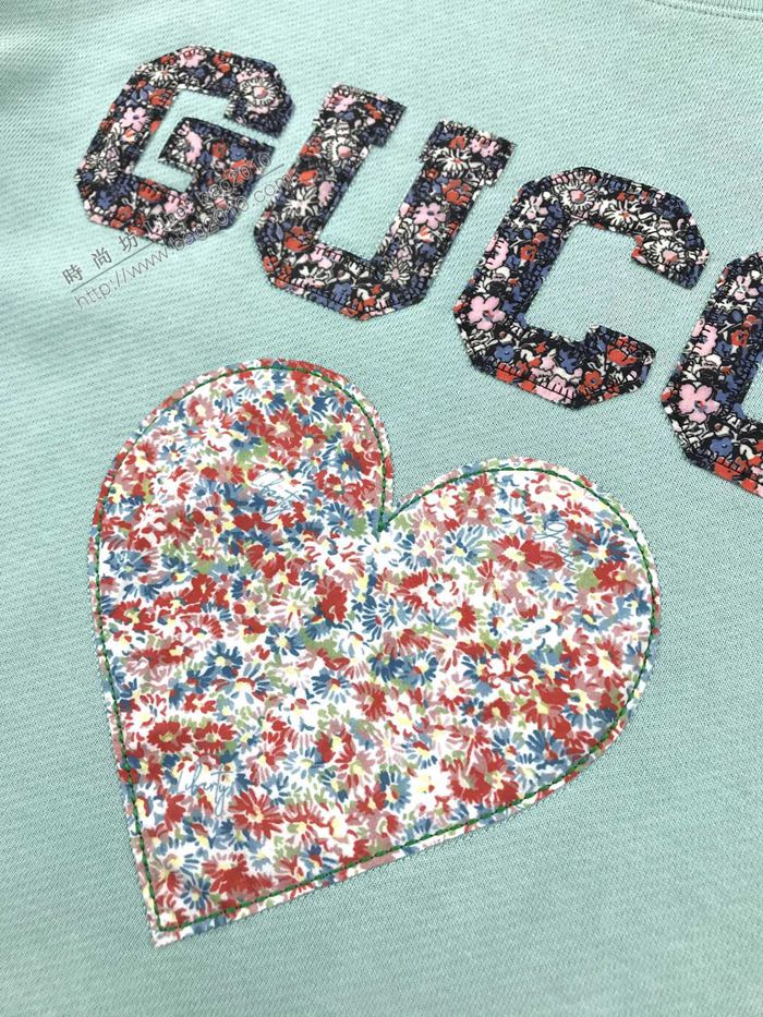 【Gucc*】20ss秋冬新款愛心貼飾衛衣,大毛圈牛肚衛衣面料克重420克左右,手感超好,男女同款,顏色:湖蘭碼數:SML