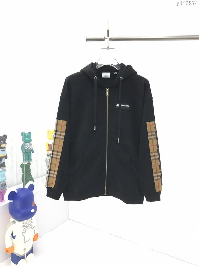 Burberry男裝 巴寶莉秋冬經典拼格紋棉質拉鏈帽衫 BBR拉鏈衛衣外套 男女同款 ydi3274