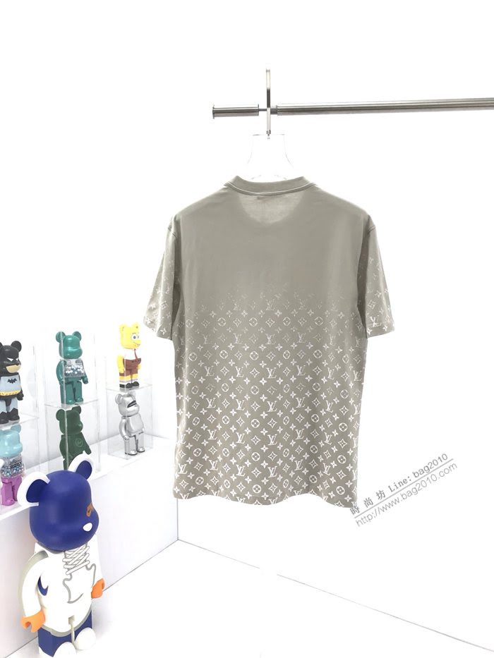 LV男裝 2020秋冬新款渲染光影漸變LOGO圖案休閒純棉短袖T恤 LV男女情侶同款  ydi3421