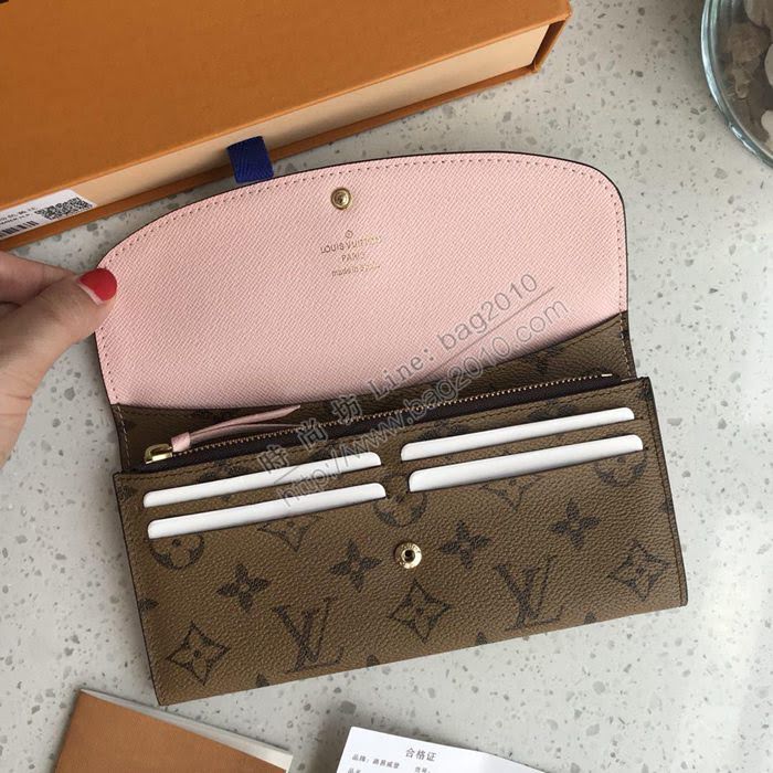LV錢包 海外原單 M60696粉色 黃花 LV女士翻蓋長錢包 LV豆豆錢包  ygqb1025