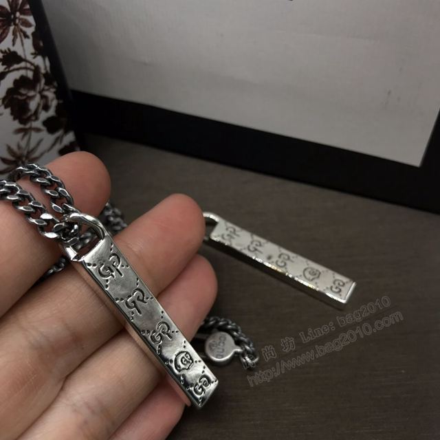 GUCCi飾品 古馳長款條形刻字母吊墜 Gucci男女簡約長方形項鏈  zgbq1050