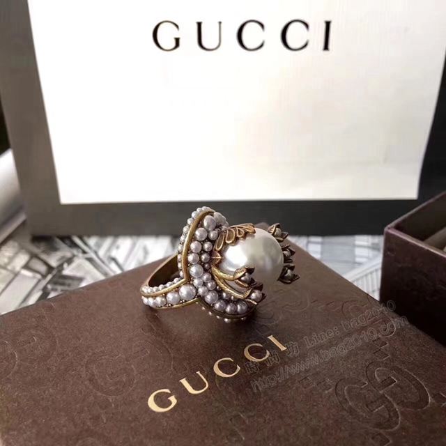 GUCCi飾品 爆款古馳珍珠戒指 Gucci復古珍珠藤蔓花瓣戒指  zgbq1125