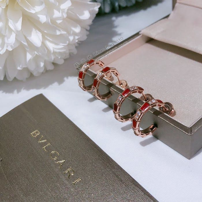 Bvlgari飾品 寶格麗SERPENTI系列 蛇貝殼半鑽耳圈 s925純銀材質  zgbq3160