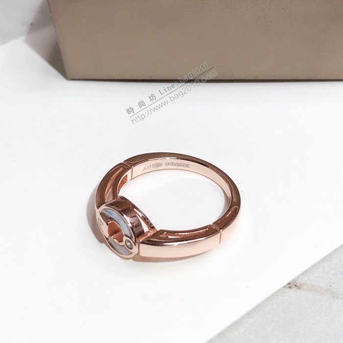 Bvlgari飾品 寶格麗鑲鑽圓形貝殼戒指 diva系列 925純銀瑰金單戒 zgbq3234