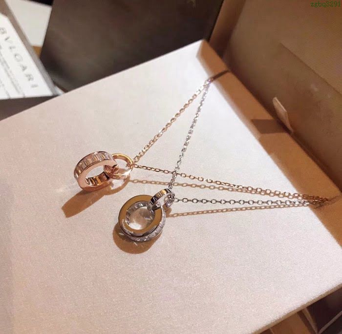 Bvlgari飾品 寶格麗排鑽NEW方鑽雙環項鏈 玫瑰金色 白金色  zgbq3291