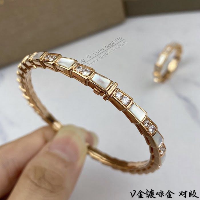 Bvlgari飾品 寶格麗V金鍍咪金 天然白貝母 寶格麗貝殼蛇手鐲 zgbq3303