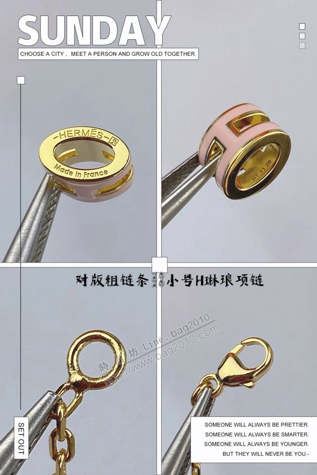 新款V金鍍咪金 對版粗鏈條 粉色,愛馬仕HERMES H琳琅迷你項鏈 ,經典系 最新詮釋H琺瑯項鏈,超級工藝水準,每一款H琺瑯彩面精細打磨,純銀耳針不過敏市面高端貨