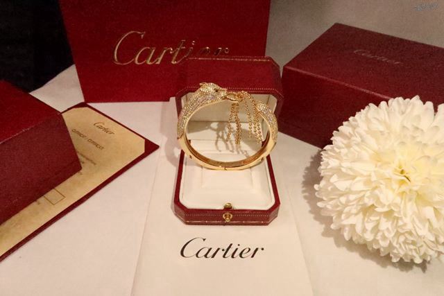 Cartier首飾 卡地亞豹頭滿鑽爆款手鐲 Cartier豹子手鐲  zgk1347