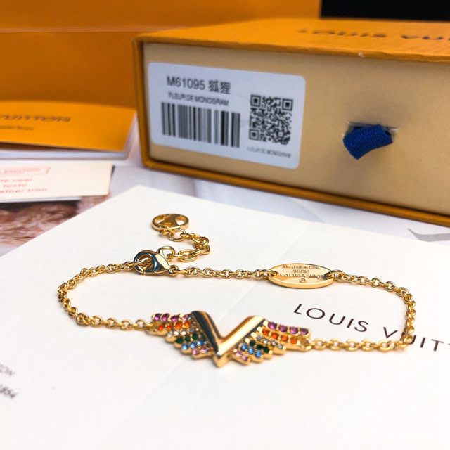 Louis Vuitton新款飾品 路易威登Essential金色手鏈手環 LV字母v天使彩鑽手鏈 zglv2045