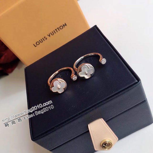Louis Vuitton純銀飾品 路易威登白貝母四葉草開口戒指 LV單花單鑽戒指 zglv2096