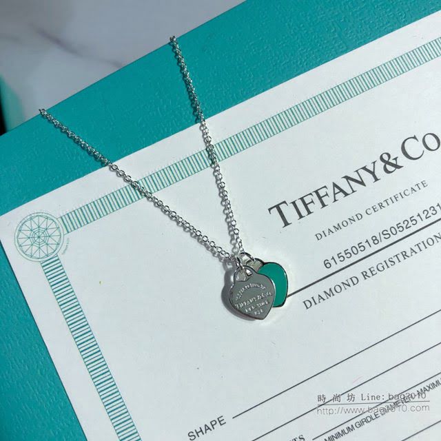 Tiffany飾品 蒂芙尼女士專櫃爆款綠色雙心琺瑯項鏈 Tiffany純銀鎖骨鏈  zgt1702